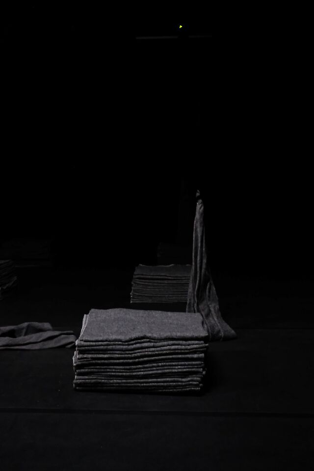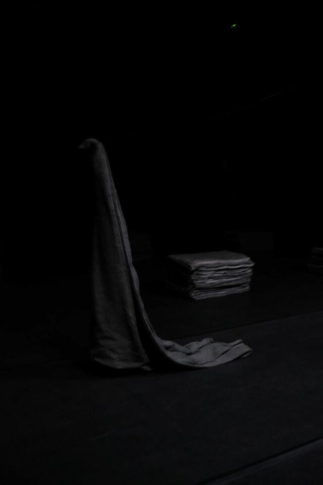 Yet this technological resurrection is not a sentimental spectacle. It is above all artistically motivated. Leysen’s voice, emerging between gray blankets, delivers the thirteenth and final text from Texts for Nothing (1952) by Samuel Beckett, in which a speaking “I” dissolves like a ghost into pure language. In 2020, Verdonck and Leysen had already theatricalized the first five parts of this postmodern prose in Act. There were plans for a complete staging of all thirteen texts, but Leysen’s death put an end to that. Dark now fulfills part of those intentions after all. For Verdonck, this AI version fits into a long tradition of ghosts and half-beings on stage, from the Greeks to Hamlet.
