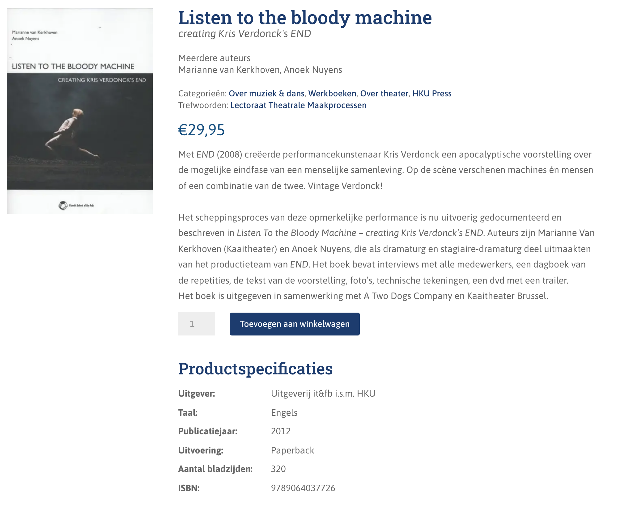 Edited by Peter Eckersall and Kristof van Baarle With a preface by Guy Gypens. Performance Research Books, Aberystwyth, UK, 204 p. - 49 color images (2020)